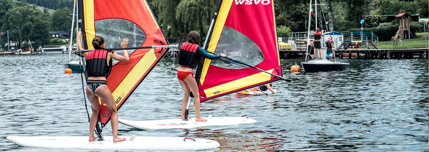 Unter idealen Bedingungen lassen sich die Grundlagen des Windsurfens kinderleicht erlernen, um bald souverän über den See gleiten zu können.